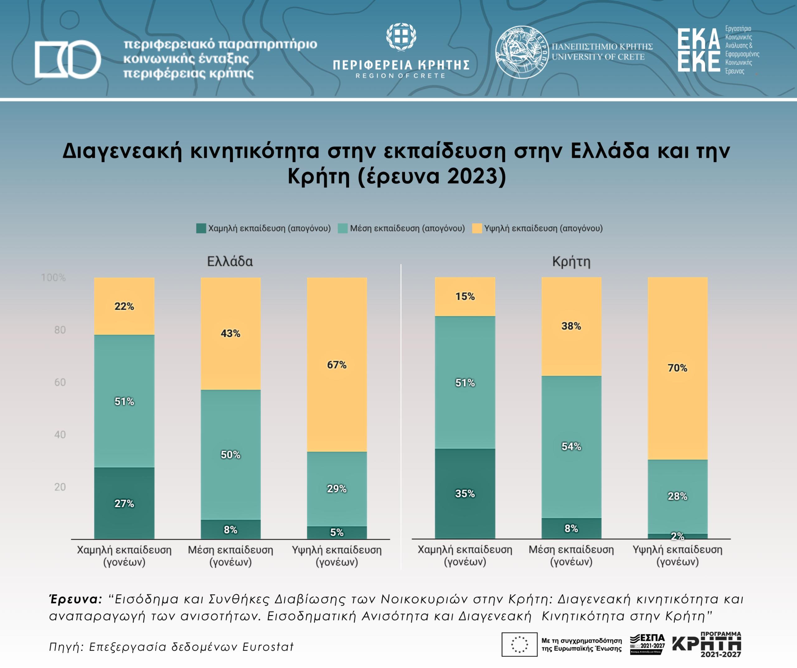Διαγενεακή κινητικότητα στην εκπαίδευση στην Ελλάδα και την Κρήτη (έρευνα 2023)