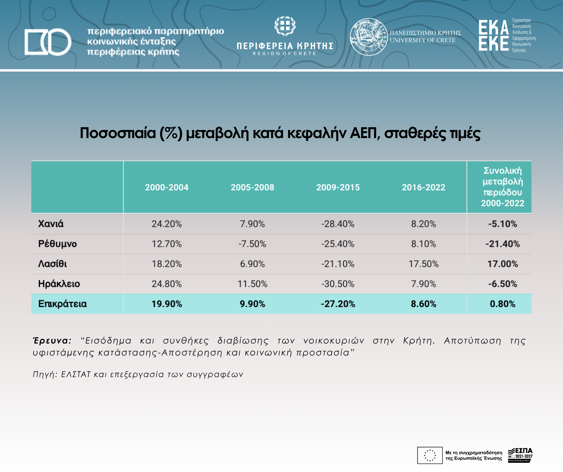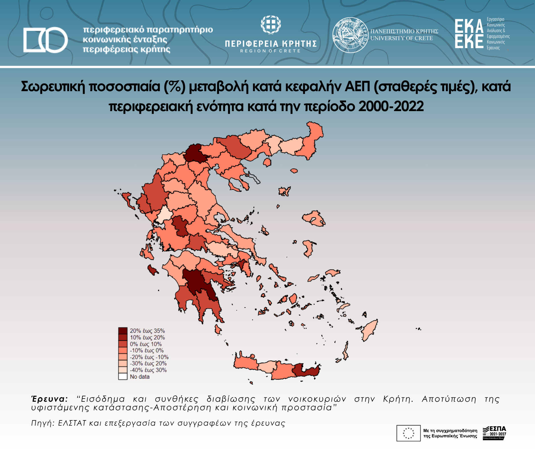 Cumulative percentage (%) change in GDP per capita (constant prices), by regional unit during the period 2000-2022