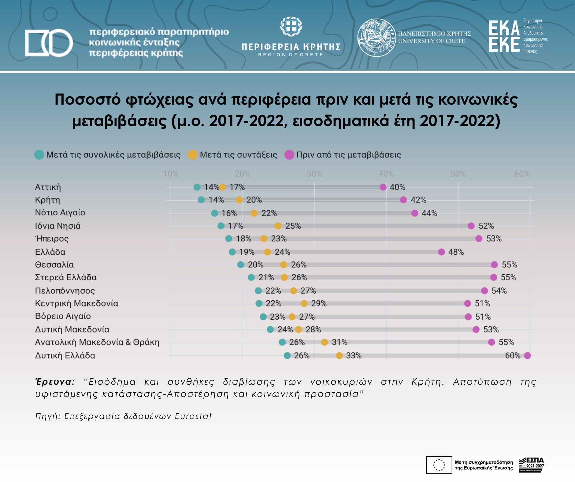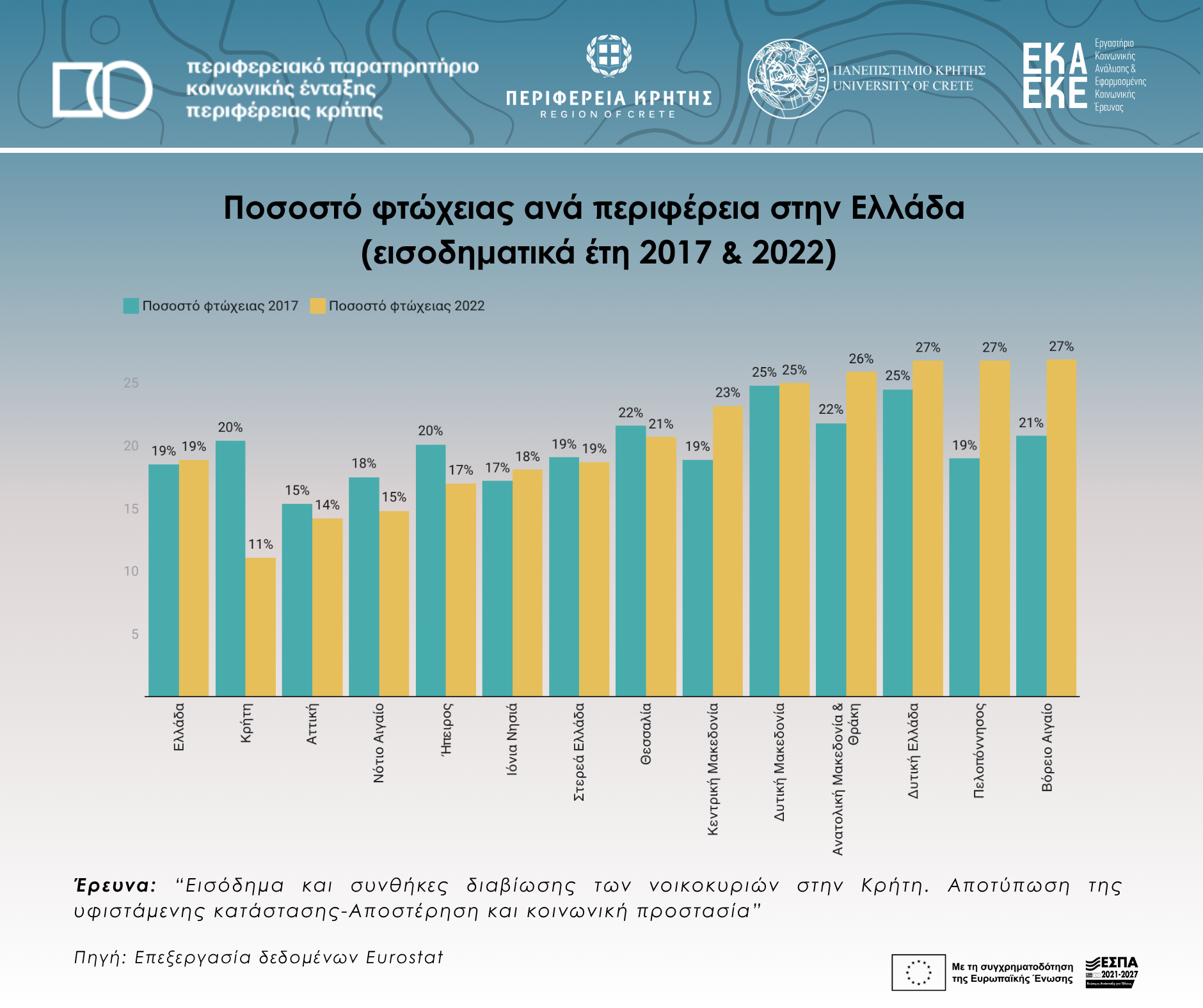 Poverty rate by region in Greece (income years 2017 & 2022)