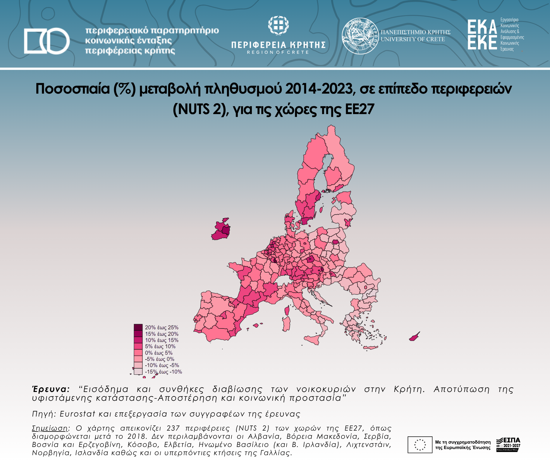 Percentage (%) population change 2014-2023, at regional level (NUTS 2), for EU27 countries