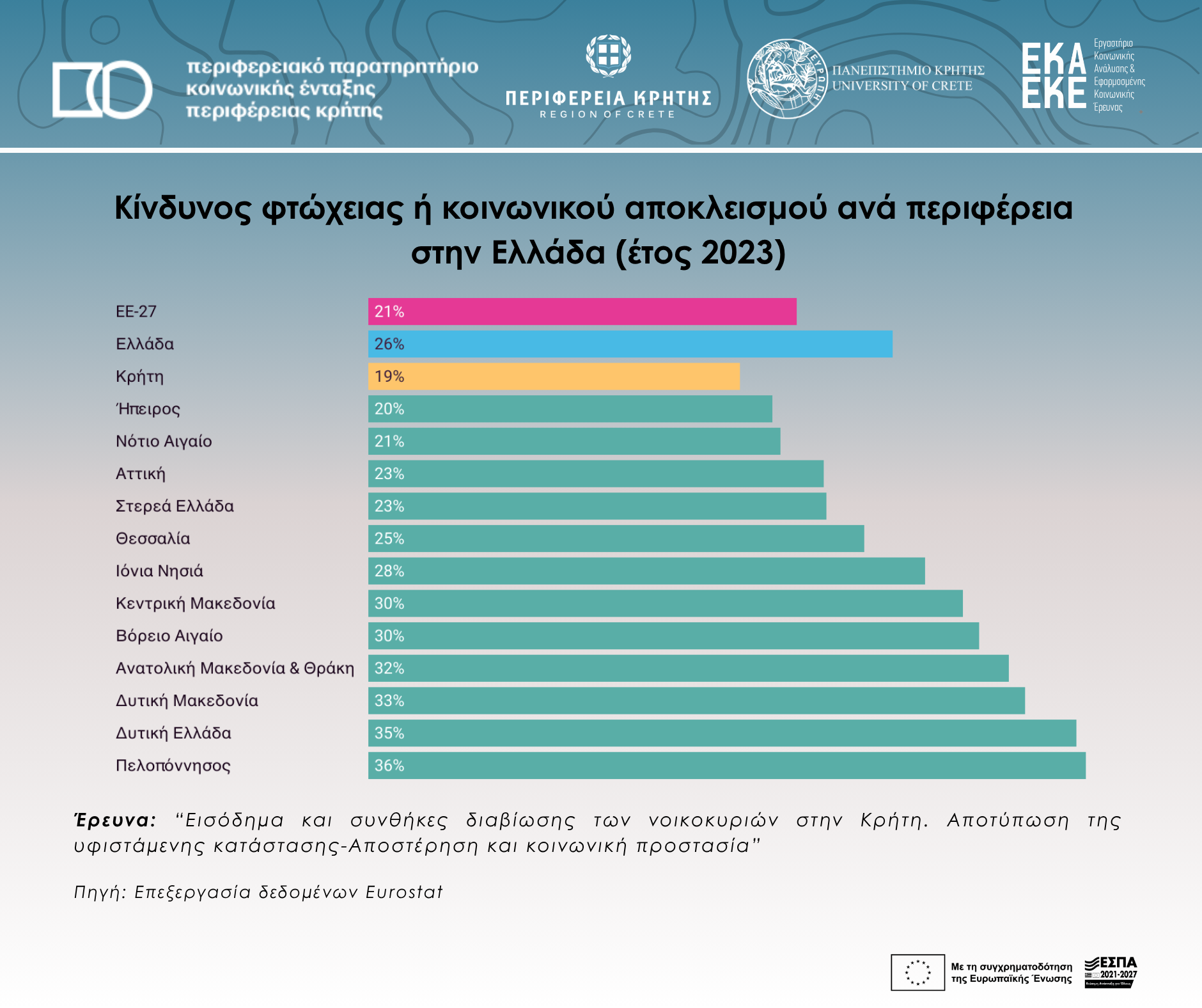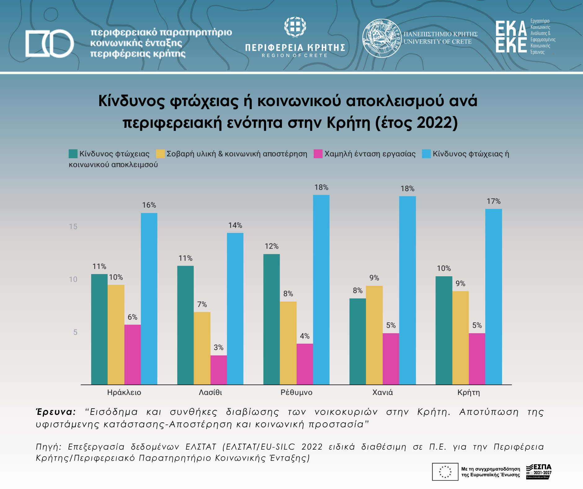 Risk of poverty or social exclusion by regional unit in Crete (year 2022)