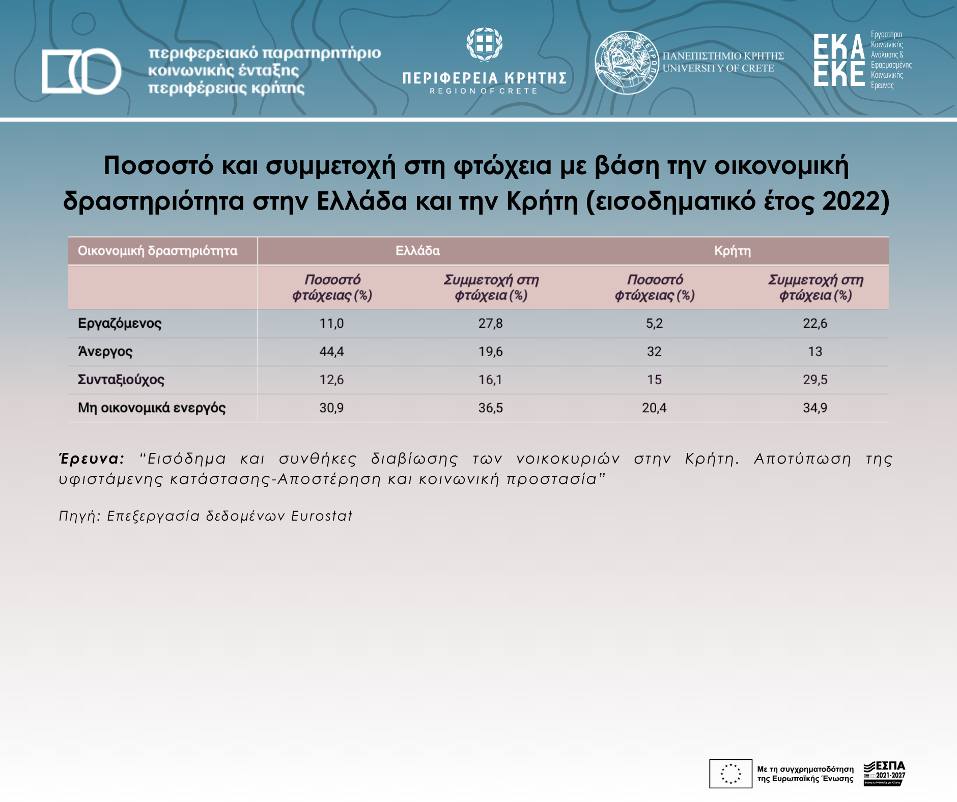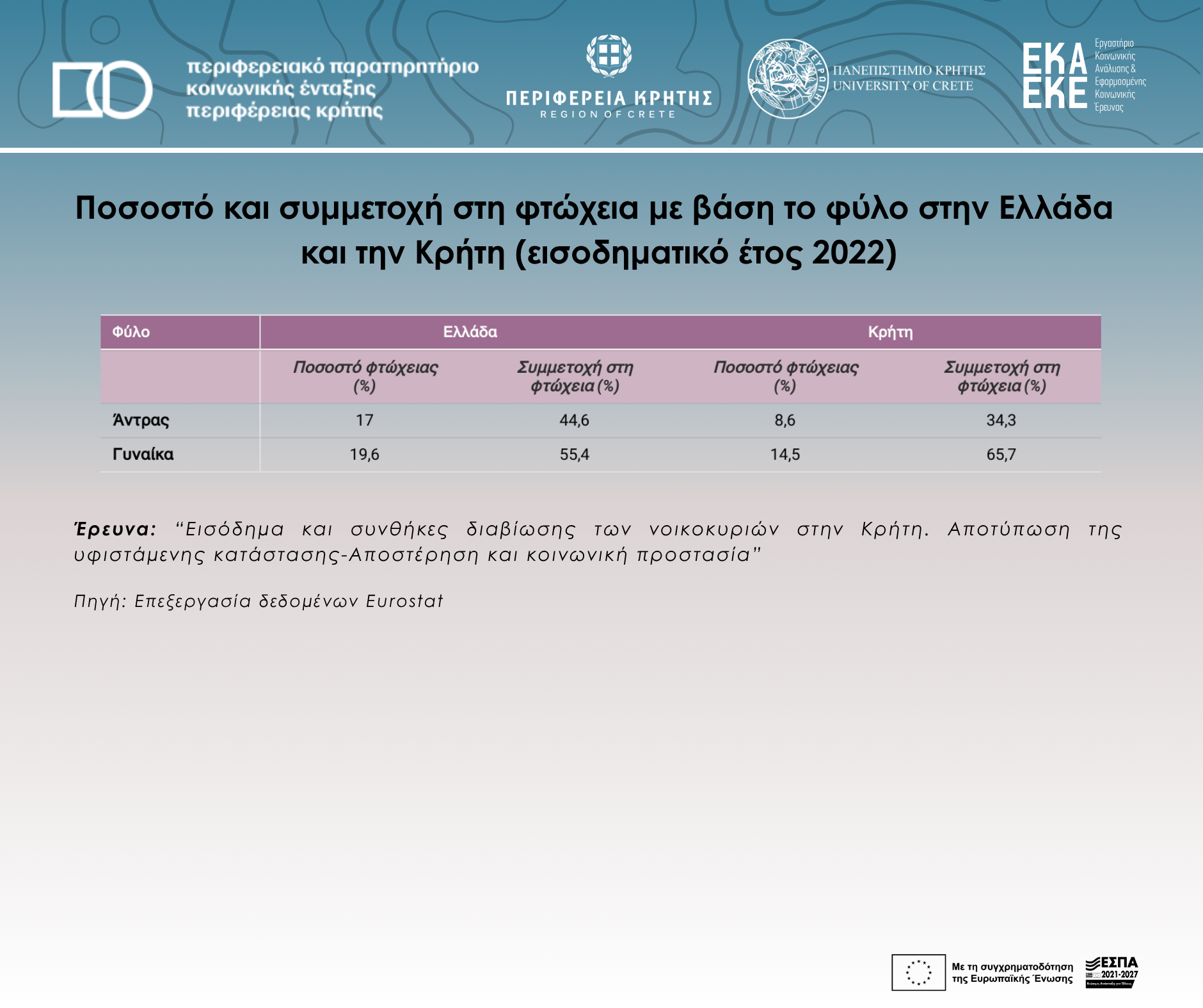 Poverty rate and participation by gender in Greece and Crete (income year 2022)