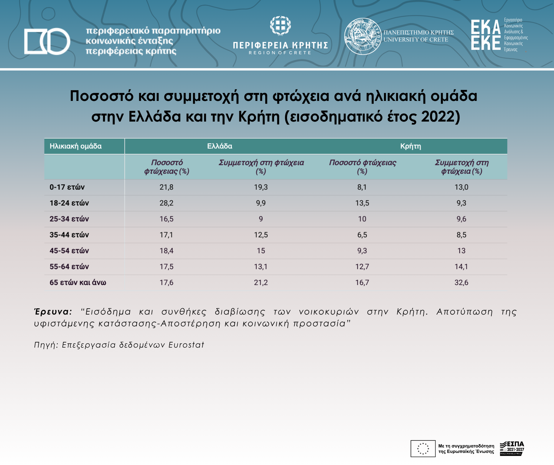 Poverty rate and participation by age group in Greece and Crete (income year 2022)