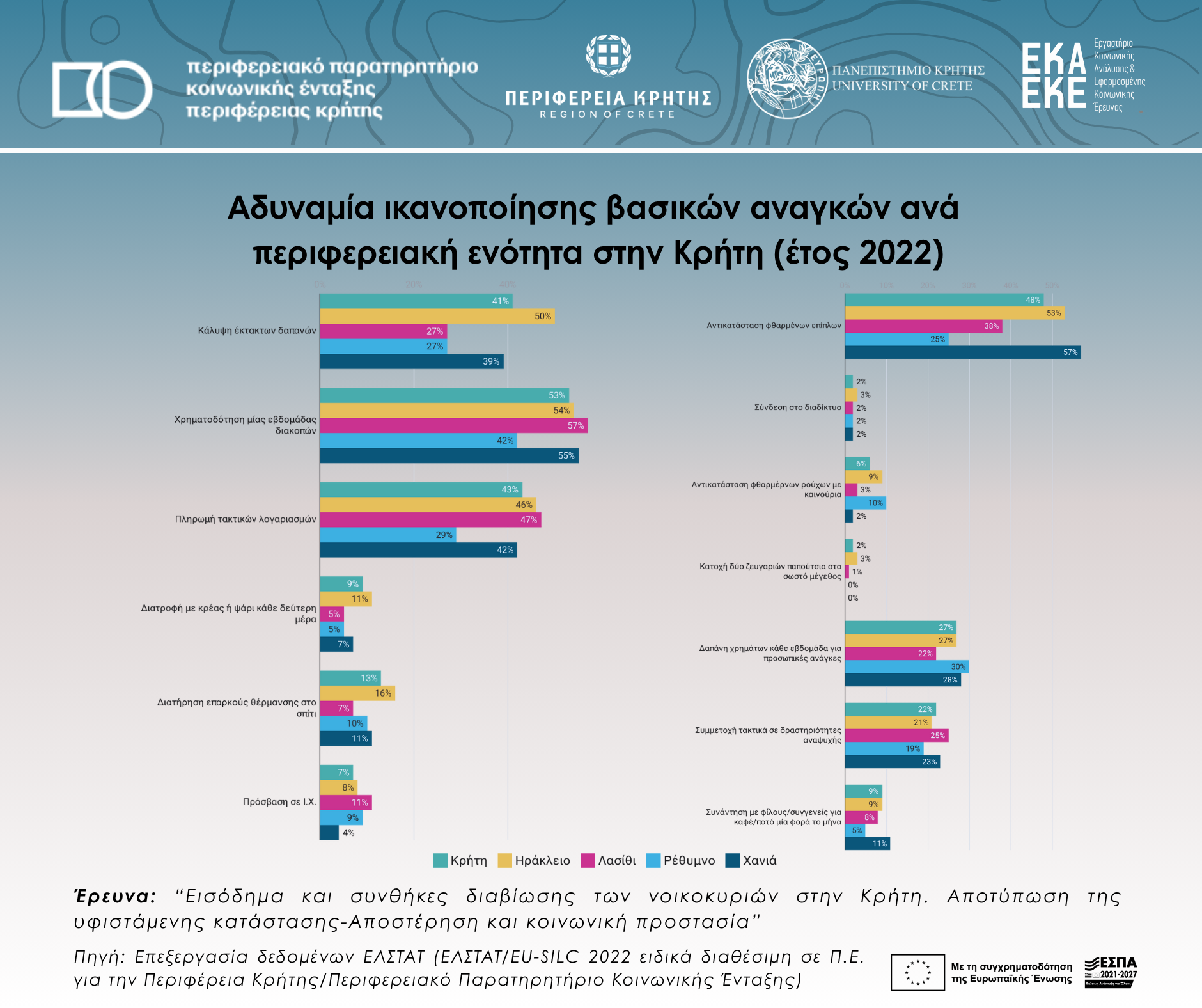 Inability to meet basic needs by regional unit in Crete (year 2022)