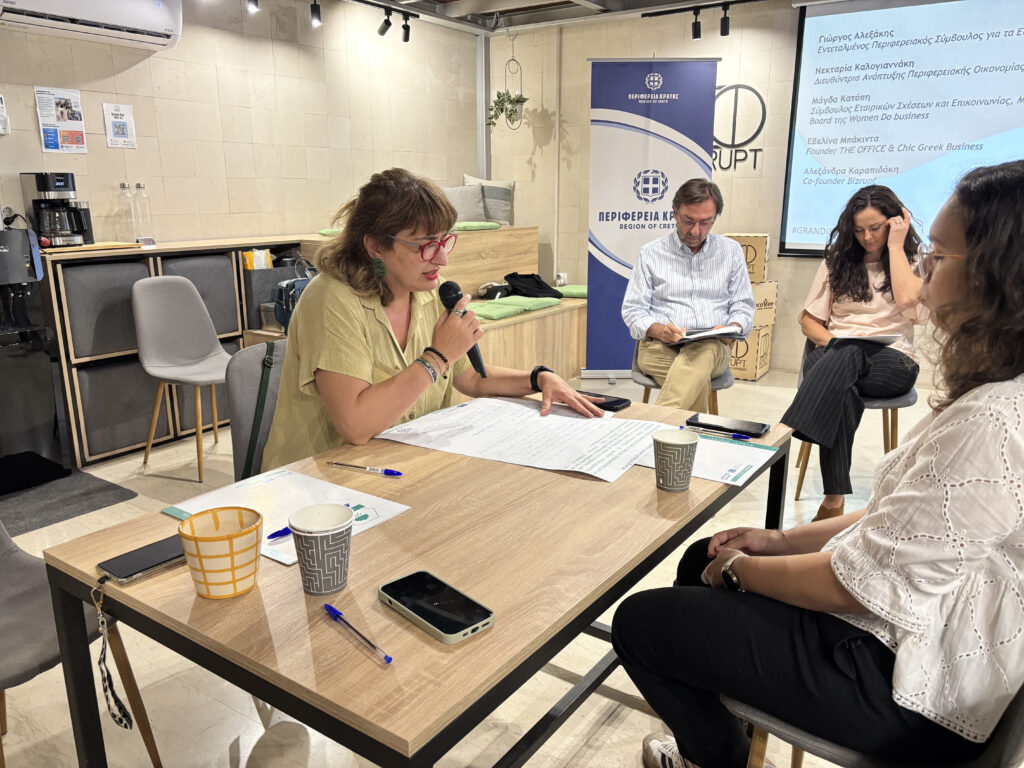 The 3rd Interactive Workshop organized by the Region of Crete within the framework of the European project GRANDIS – Green, Digital, Female-driven SMEs (Interreg Europe) was successfully completed on the afternoon of Thursday, September 25, 2025, at the Bizrupt multi-purpose hall, in Heraklion, Crete.