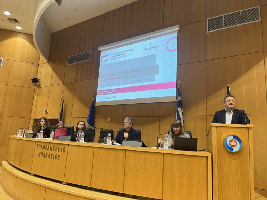 Ο Καθηγητής Κοινωνιολογίας κ. Ιωάννης Ζαϊμάκης, Επιστημονικά Υπεύθυνος της συνεργασίας Πανεπιστημίου Κρήτης – Περιφερειακού Παρατηρητηρίου, παρουσίασε κρίσιμα ευρήματα σχετικά με τις ανάγκες κοινωνικής κατοικίας στην Κρήτη. Η κα Αδαμαντία Ζησοπούλου, Διευθύντρια Στεγαστικής Πολιτικής του Υπουργείου Κοινωνικής Συνοχής και Οικογένειας, ανέλυσε την ιστορική εξέλιξη και τους σύγχρονους μετασχηματισμούς της κοινωνικής κατοικίας στην Ελλάδα, ενώ η Δρ. Δήμητρα Σιατίτσα, ερευνήτρια σε θέματα πόλης και κατοικίας, ανέδειξε την αναγκαιότητα αποκεντρωμένων στεγαστικών πολιτικών με τοπικό αποτύπωμα. Στο ίδιο πλαίσιο η κα Μερίτς Όζγκουνες, Συντονίστρια Προγραμμάτων Κοινωνικής Στέγασης του Φορέα Κοινωνικής Μίσθωσης Θεσσαλονίκης – ΜΑΘ Α.Ε. ΑΟΤΑ, παρουσίασε την εμπειρία και τα αποτελέσματα του Γραφείου Κοινωνικής Στέγασης Θεσσαλονίκης ως παράδειγμα μακροπρόθεσμης και τοπικά προσαρμοσμένης κοινωνικής στεγαστικής πολιτικής.