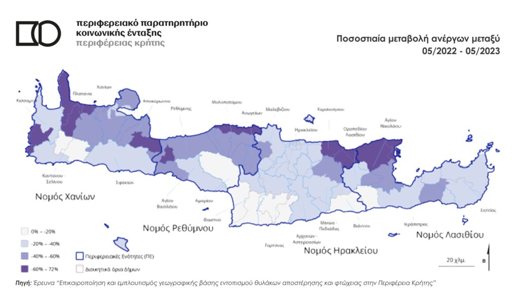 Χάρτες Αποστέρησης Ποσοστιαία μεταβολή ανέργων μεταξύ 05/2022-05/2023 Ποσοστιαία μεταβολή ανέργων μεταξύ 05/2022-05/2023 Δείτε την έρευνα εδώ. Ημ. ανάρτησης: 02/2026 Μοιραστείτε το: Share on Facebook Share on LinkedIn Share on X Share on Viber Share on SMS Share on Pocket Share on Pinterest Email this Page