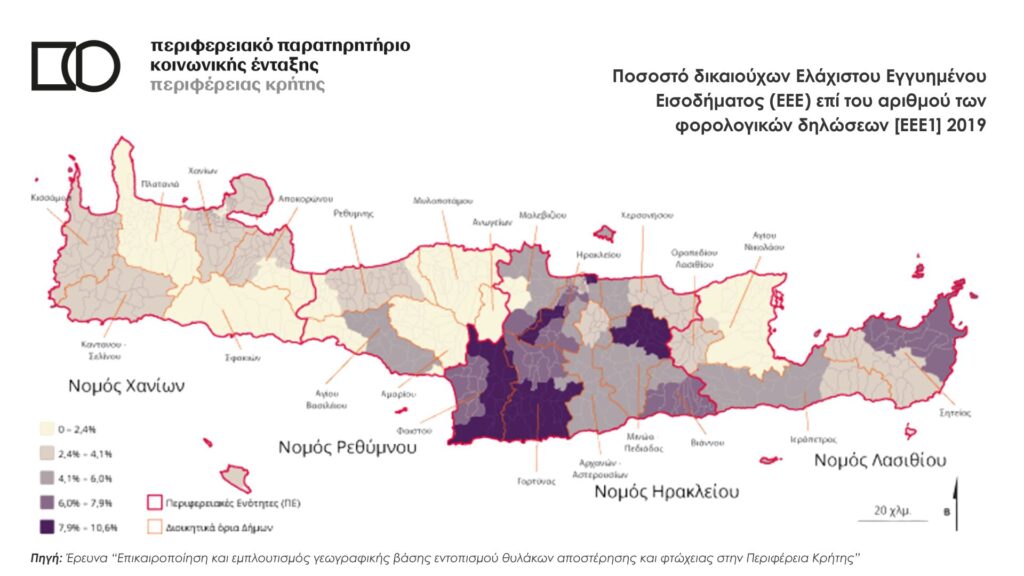 Ποσοστό δικαιούχων Ελάχιστου Εγγυημένου Εισοδήματος (ΕΕΕ) επί του αριθμού των φορολογικών δηλώσεων [ΕΕΕ1] 2019